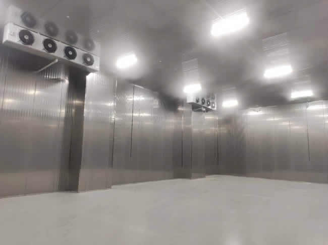 冷庫優勢:制冷系統一備一用、304不銹鋼保溫冷庫板、防凍地面。