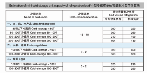 小型冷藏庫(kù)單位容量制冷負(fù)荷估算表