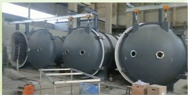 3、 連續生產采用矩形倉或圓形倉結構,兩端設隔離真空鎖,主倉內設軌道行走系統,多個加熱溫度帶,并具有自動調溫系統,能較準確的判斷物料干燥程度。